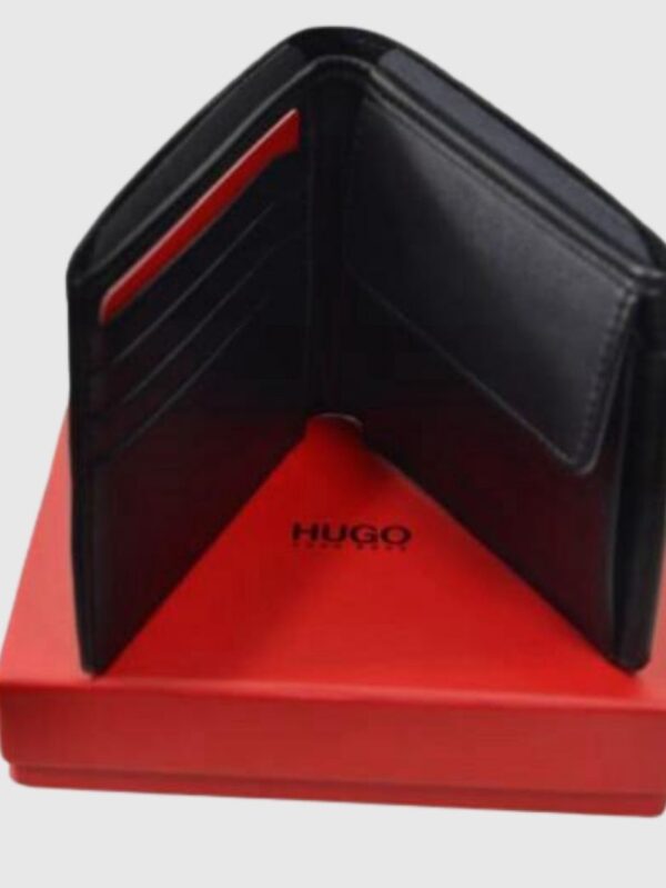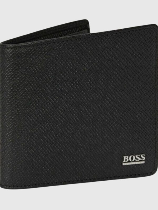 NEW HUGO BOSS SUBWAY 4CC MENS BIFOLD BLACK LEATHER WALLET WITH COINS POCKET