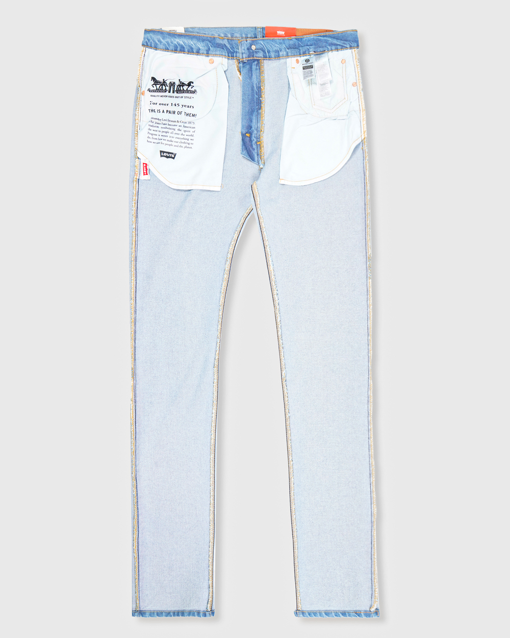 • Wash your jeans once every 10 wears at most; this increases their lifespan and saves natural resources.Machine wash cold, Do not bleach, Tumble dry medium, Warm iron if needed, Dry cleaning possible, Wash inside out with like colors